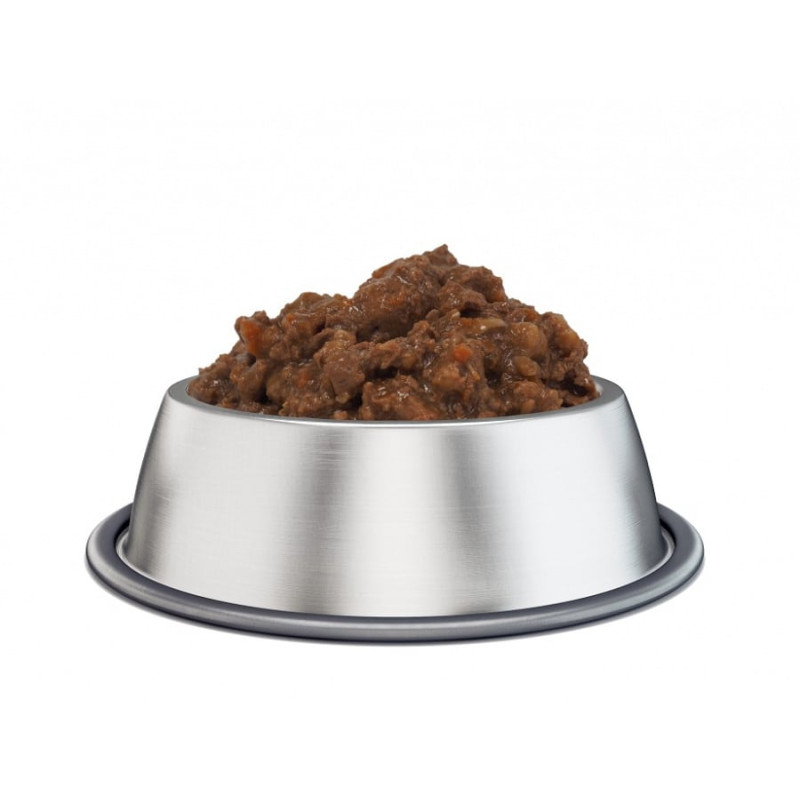 Pilnvērtīga Super Premium klases mitrā barība ar vistu buljonā, piemērota pieaugušiem suņiem un kucēniem no 2 mēnešiem.