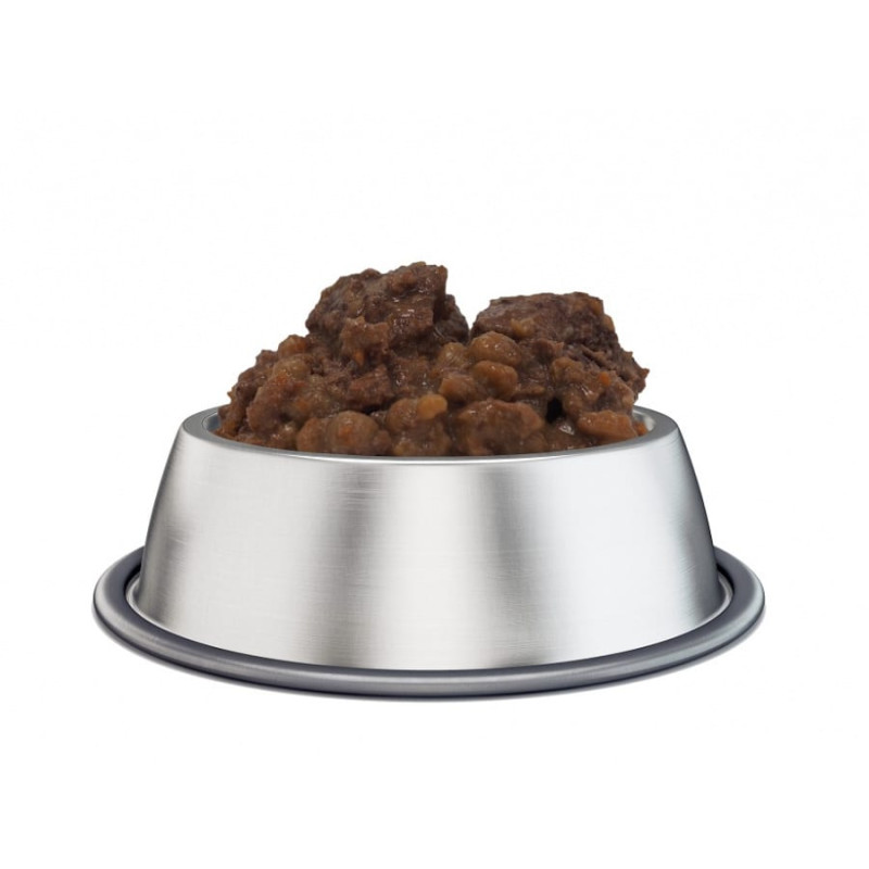 Pilnvērtīga Super Premium klases mitrā barība ar brieža gaļu buljonā, piemērota pieaugušiem suņiem un kucēniem no 2 mēnešiem.