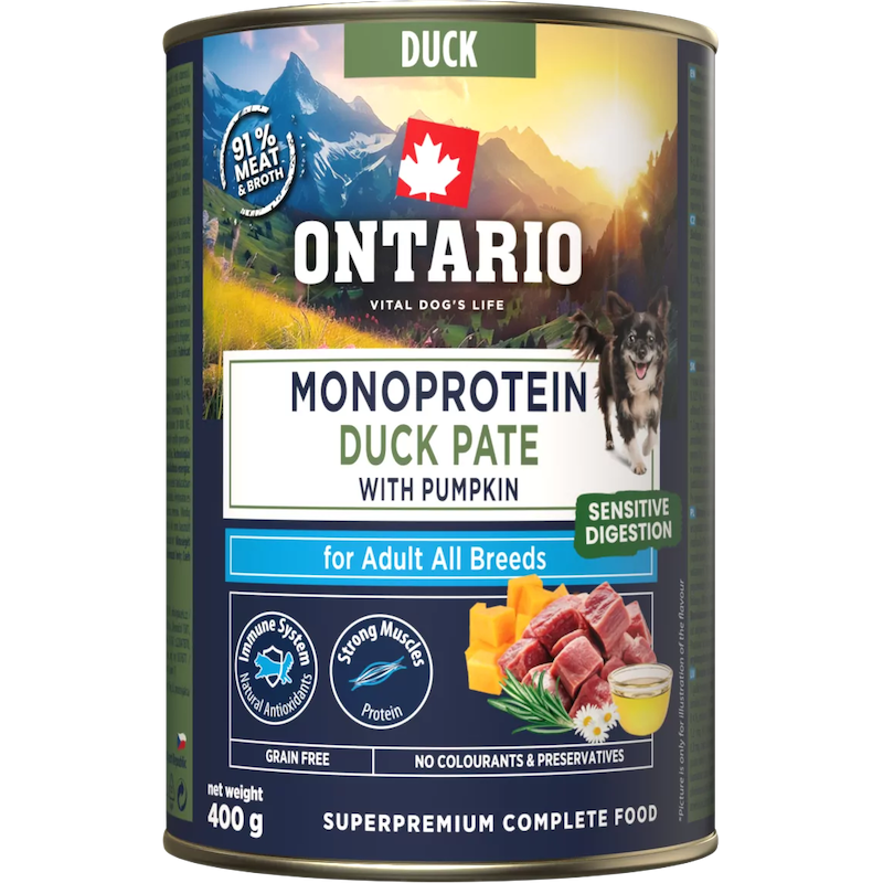 Konservi Ontario Adult Monoprotein – pīles pastēte ar ķirbi, 400 g Viegla gremošana un spīdīgs kažoks Monoproteīna pīles pastēte ar 91 % gaļas un buljona ir ideāla izvēle suņiem ar jutīgu gremošanu. Bagātināta ar ķirbi, kas atbalsta imunitāti un veicina spīdīgu kažoku. Barojoša, garšīga un droša barība jūsu sunim. Priekšrocības: Monoproteīns: viens gaļas veids — piemērots jutīgai gremošanai un alerģiskiem suņiem 91 % gaļas un buljona: augsts kvalitatīvas gaļas saturs izcilai garšai Jutīga gremošana: saudzīgs sastāvs, labi panesams Imūnsistēmas atbalsts: sabalansēts sastāvs ar vitamīniem Pīles monoproteīns: garšīgs un uzturvielām bagāts olbaltumvielu avots Ķirbis: beta-karotīna, vitamīnu, minerālvielu un šķiedrvielu avots zarnu darbībai Timiāns un rozmarīns: veicina gremošanu, imunitāti un dabisku konservēšanu Kumelīte: nomierina gremošanas un nervu sistēmu, piemīt pretiekaisuma īpašības Super premium pilnvērtīga barība pieaugušiem visu šķirņu suņiem, arī ar jutīgu gremošanu. Speciālista padoms: Pīles monoproteīns ar ķirbi ir lieliska izvēle suņiem ar jutīgu gremošanu. Taukskābes veicina veselīgu ādu un spīdīgu kažoku. Ieteicams kā drošs un īpaši garšīgs papildinājums monoproteīna sausajai barībai. Monoproteīns — kad svarīga kvalitāte un miers Pīles gaļa ir barojoša un bagāta ar veselīgām taukvielām, piemērota arī alerģiskiem suņiem. 91 % gaļas un buljona nodrošina dabīgu un drošu uzturu. Ķirbis — balzams gremošanai Ķirbis ir superprodukts suņu uzturā. Tas satur īpašu šķiedrvielu veidu, kas palīdz regulēt gremošanu, ir viegli sagremojams un veicina labu pašsajūtu un spīdīgu kažoku. Galvenās priekšrocības: 91 % gaļas un buljona Monoproteīns: pīle Kumelīte — pretiekaisuma iedarbība Ķirbis — gremošanas un imunitātes atbalsts Sastāvdaļas: Pīles gaļa, buljons, ķirbis, kumelīte, timiāns, rozmarīns, saulespuķu eļļa, inulīns, linsēklu eļļa.