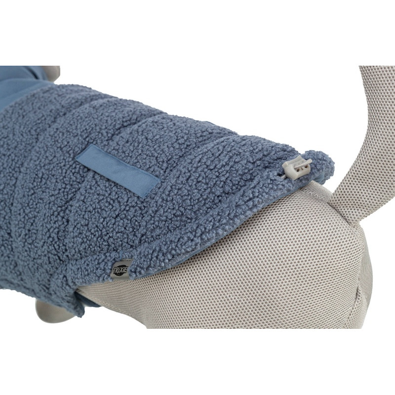 Ziemas mētelis Ajou. Produkta informācija: poliesters, ar siltu polsterējumu, ar dekoratīvām kabatām, ar regulējamu elastīgu krūšu daļu, ar lipekļa aizdari krūšu un vēdera zonā. Izmērs M, vēdera apkārtmērs 52-63 cm, muguras garums 45 cm. Krāsa: zila.