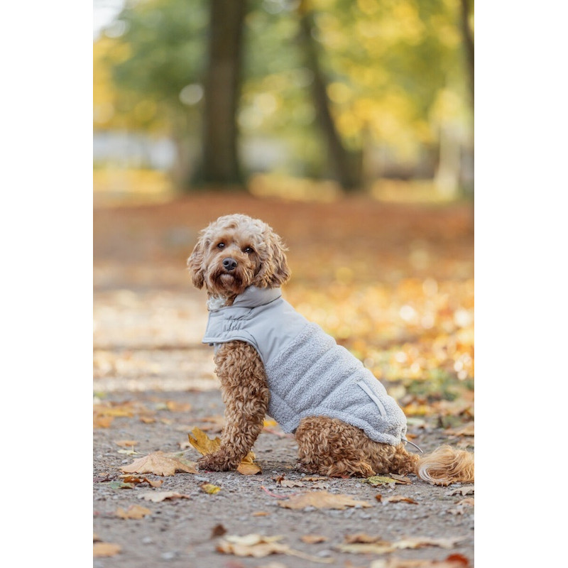 Ziemas mētelis Ajou. Produkta informācija: poliesters, ar siltu polsterējumu, ar dekoratīvām kabatām, ar regulējamu elastīgu krūšu daļu, ar lipekļa aizdari krūšu un vēdera zonā. Izmērs XS, vēdera apkārtmērs 40-46 cm, muguras garums 30 cm. Krāsa: pelēka.
